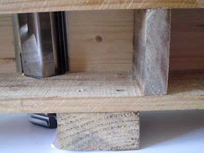 This view primarily shows how the left side of the pasta machine is clamped to the wooden structure.
